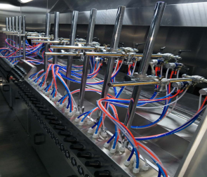 地軌式自動(dòng)噴涂線介紹地軌式自動(dòng)噴涂線也叫固定噴槍噴涂線或spindle自動(dòng)噴涂線,原理就是把噴槍固定起來(lái),根據(jù)工藝要求進(jìn)行噴涂。其功能集地面自動(dòng)輸送線,固定自動(dòng)噴涂,自動(dòng)烘干T等一體化系統(tǒng),并結(jié)合無(wú)塵凈化車(chē)間,恒溫控制,廢氣處理系統(tǒng)組成,可以根據(jù)需求設(shè)計(jì)兩涂?jī)煽荆咳荆耐克目荆偌由蟄V固化設(shè)備。地軌式自動(dòng)噴涂線特點(diǎn)與優(yōu)勢(shì):1.起到靜電除塵,噴涂、烘干、UV固化自動(dòng)噴涂流水的功能,適合批量連續(xù)生產(chǎn),產(chǎn)量高,噴涂均勻。2.輸送鏈條與軌道接觸點(diǎn)配置軸承,配合精準(zhǔn)的軌道,運(yùn)轉(zhuǎn)時(shí)輕快平穩(wěn)不抖動(dòng),3.靜電除塵系統(tǒng),進(jìn)口高要靜電發(fā)生器,離子風(fēng)嘴可上下前后機(jī)械式調(diào)節(jié),可配合產(chǎn)品大小不同而變化,加上工件自動(dòng),除塵無(wú)360度死角。4.固定式自動(dòng)噴槍可用于步進(jìn)是或者聯(lián)系的在線噴涂,及簡(jiǎn)單又實(shí)用。采用工件高速自動(dòng)噴涂,行程及速度可調(diào)節(jié),靈活性大,無(wú)死角。5.水簾環(huán)保噴房設(shè)計(jì),氣流順暢潔凈,噴房室內(nèi)導(dǎo)流板機(jī)擾流板的精心配置,讓亂流遠(yuǎn)離工件,并快速循環(huán)利用。6.UV固化室內(nèi)設(shè)都說(shuō)進(jìn)口等,任意調(diào)節(jié)照射距離與角度。可以任意選擇燈工作數(shù)量,根據(jù)照射強(qiáng)度選擇,工件自動(dòng)旋轉(zhuǎn)設(shè)計(jì),保證了工件照度均勻。好了,以上就是有關(guān)地軌式自動(dòng)噴涂線介紹,大家學(xué)會(huì)了嗎?